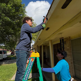 While we did the roof work, the ground team got the whole house primed and ready to be painted. We also got to talk to Ms Betty more today and found out that she was a secretary at a children’s hospital. Also, we learned she has family in Katy! She’s a really sweet lady and comes to check on us a lot throughout the day.